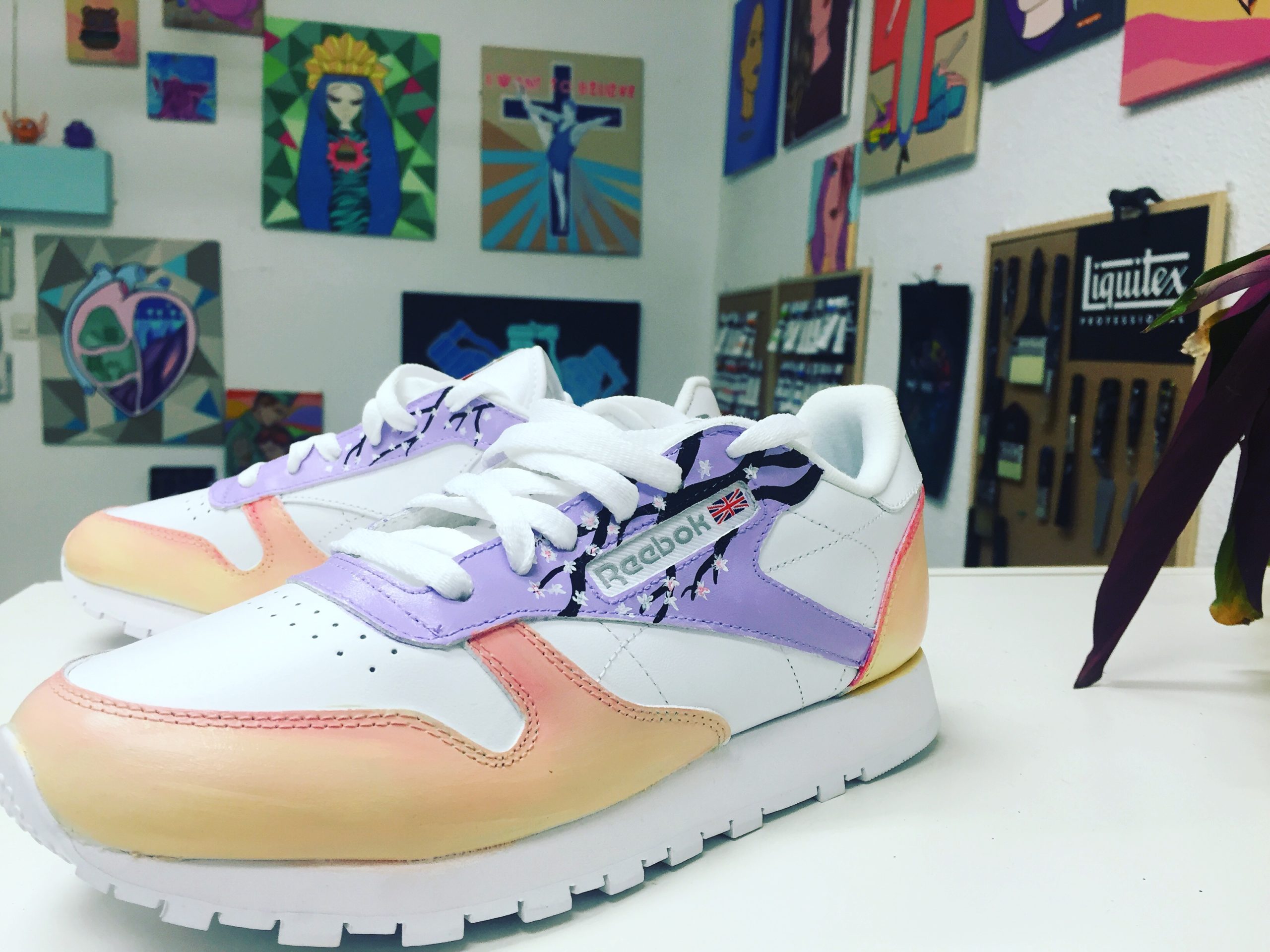 Acrílico sobre modelo clásico de Reebok.
